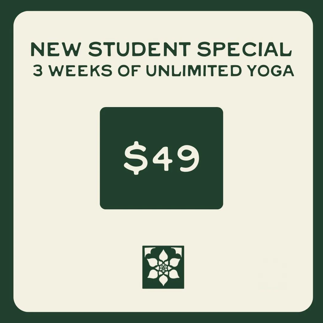 New, first-time students can enjoy an introductory 3 weeks of unlimited yoga for $49.